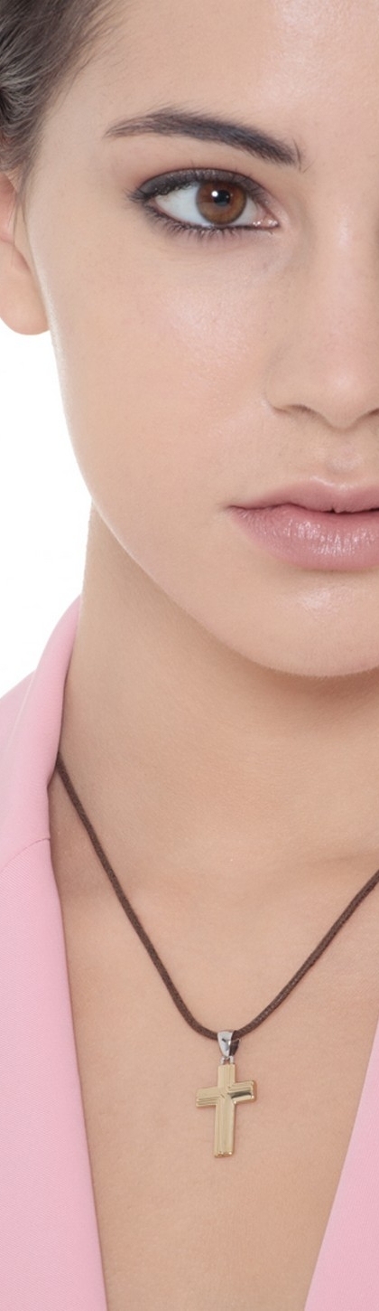 Ciondolo croce in oro bianco e oro giallo 18k, 2,5 cm.