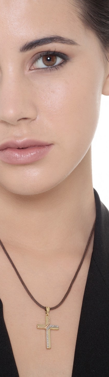 Ciondolo Croce in oro bianco, rosa e giallo 18k Diamantato.