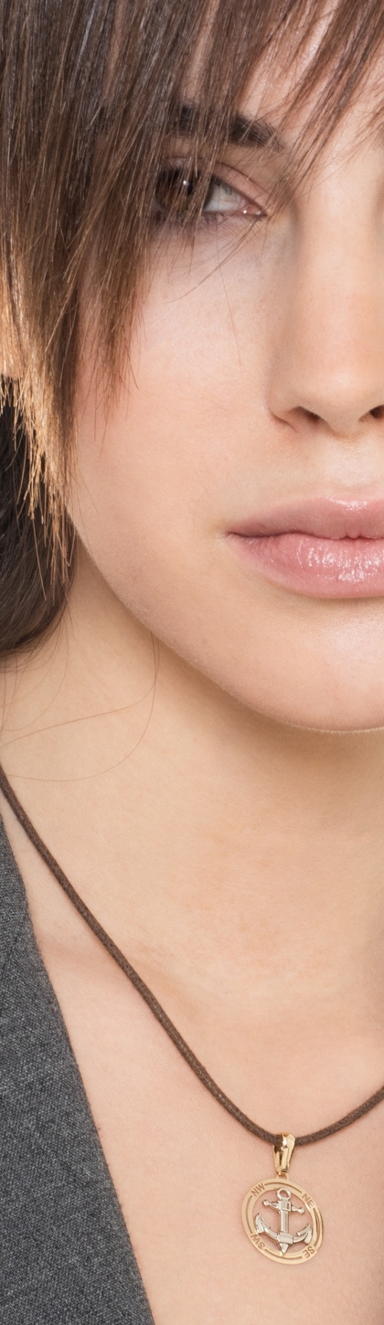 Ciondolo in oro bianco e giallo 18k, Rosa dei Venti e ancora.