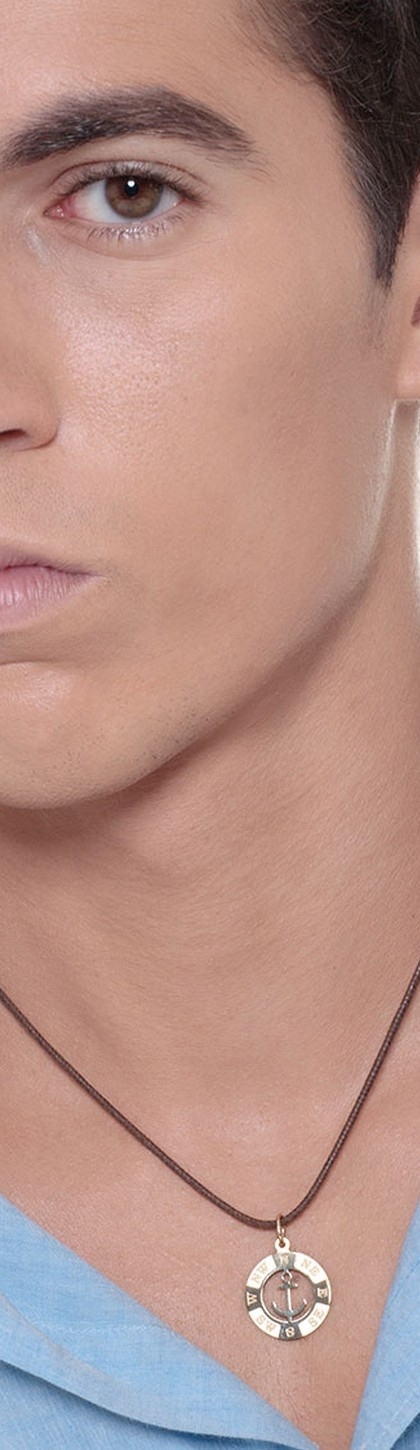 Ciondolo in oro giallo 18k rosa dei venti e ancora