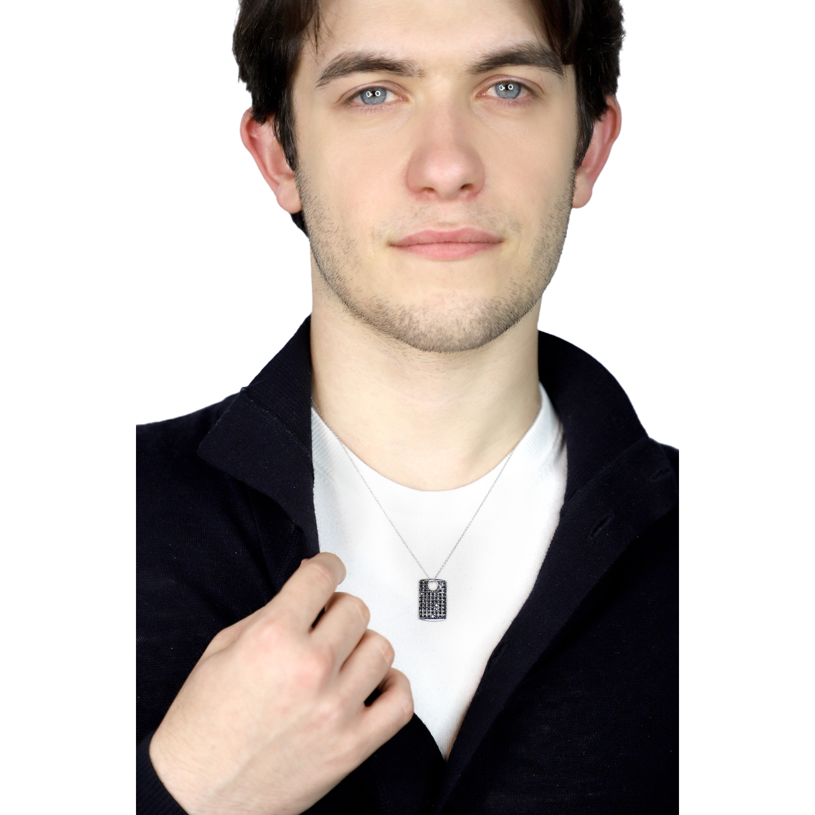 Collana in oro bianco 18k con ciondolo pavè in diamanti neri