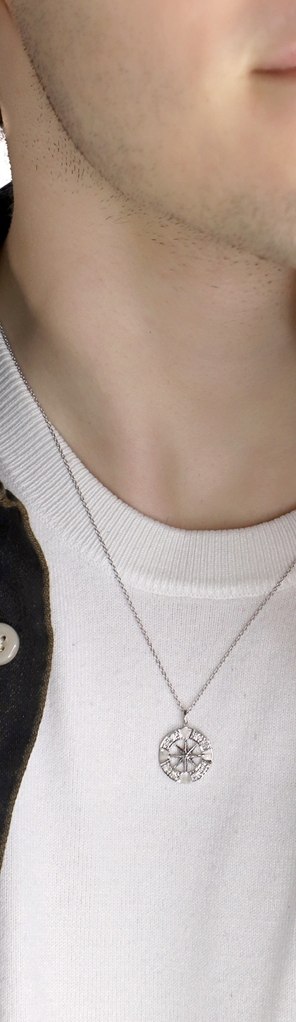 Collana in oro bianco 18k con ciondolo rosa dei venti e diamanti, catena rolò...1.760,00 € -