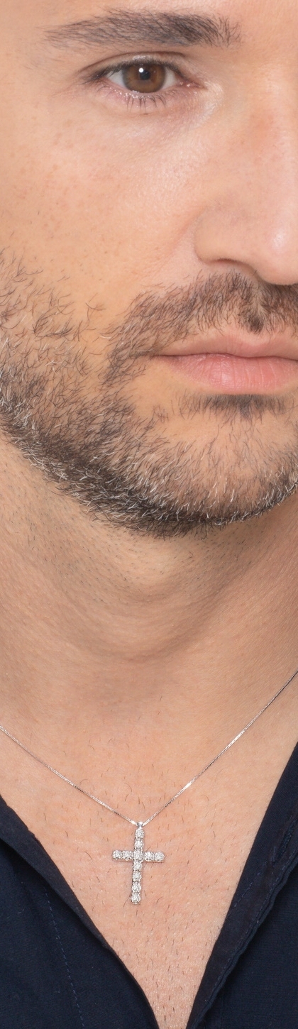 Collana in oro bianco 18k con croce diamanti, 50 cm
