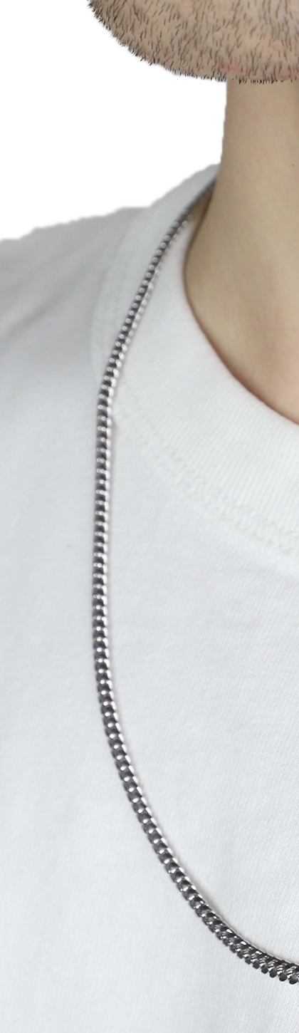 Collana in oro bianco 18k a maglia groumette piatta, cm 60.
