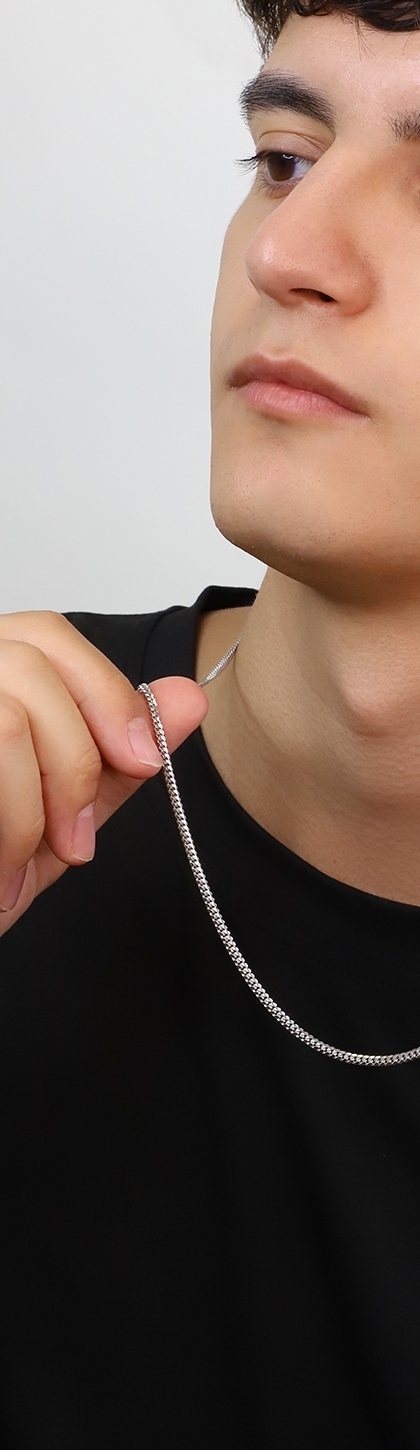 Catena uomo a maglia groumette in oro bianco 18k, cm 50.4.000,00 € -