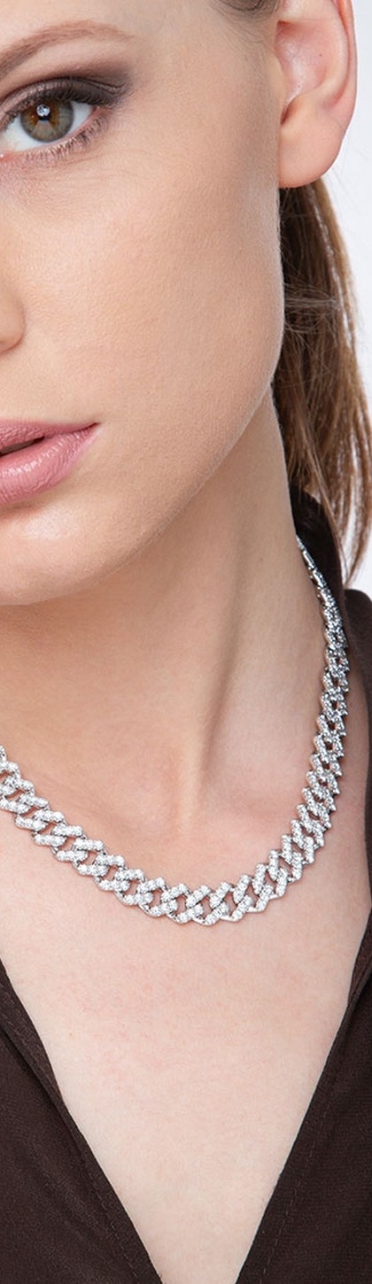Collana maglia Cuban Link in oro bianco 18k con Diamanti