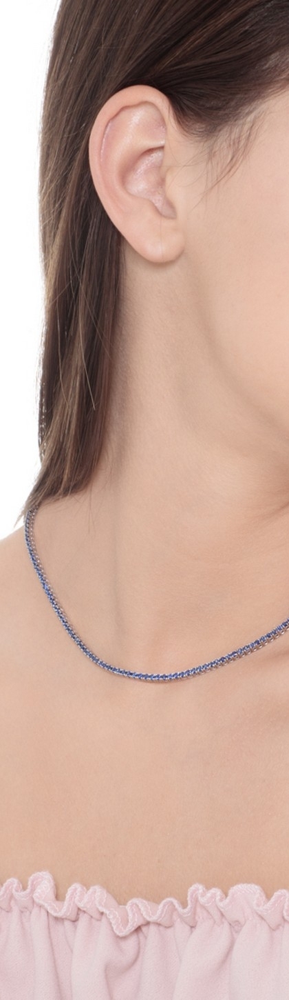 Collana tennis filo in oro bianco 18k con Zaffiri blu