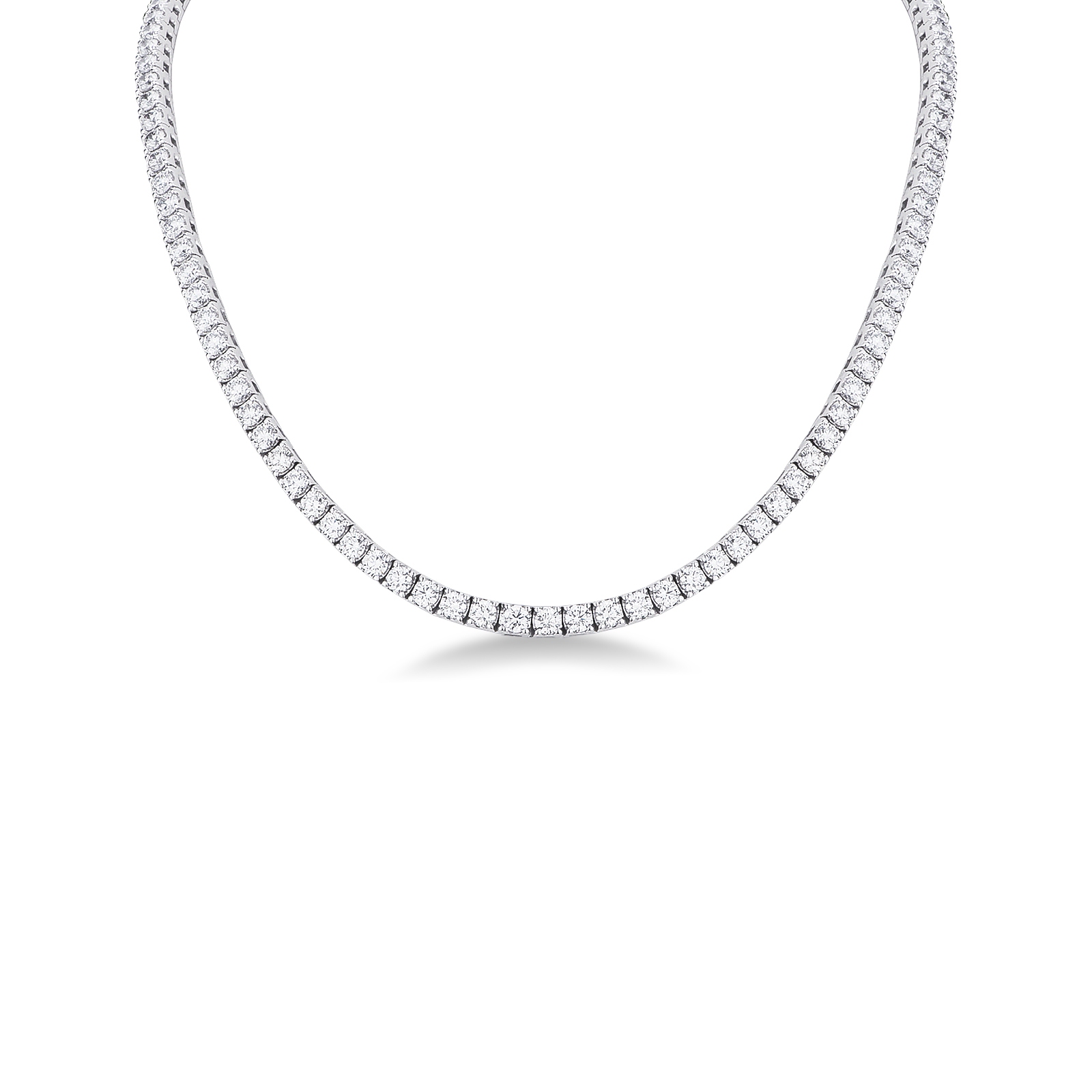 Collana tennis con diamanti bianchi, semplice ed elegante. Realizzata in oro bianco 18k, si ispira al più celebre bracciale tennis, di cui mantiene lo stesso stile sofisticato.