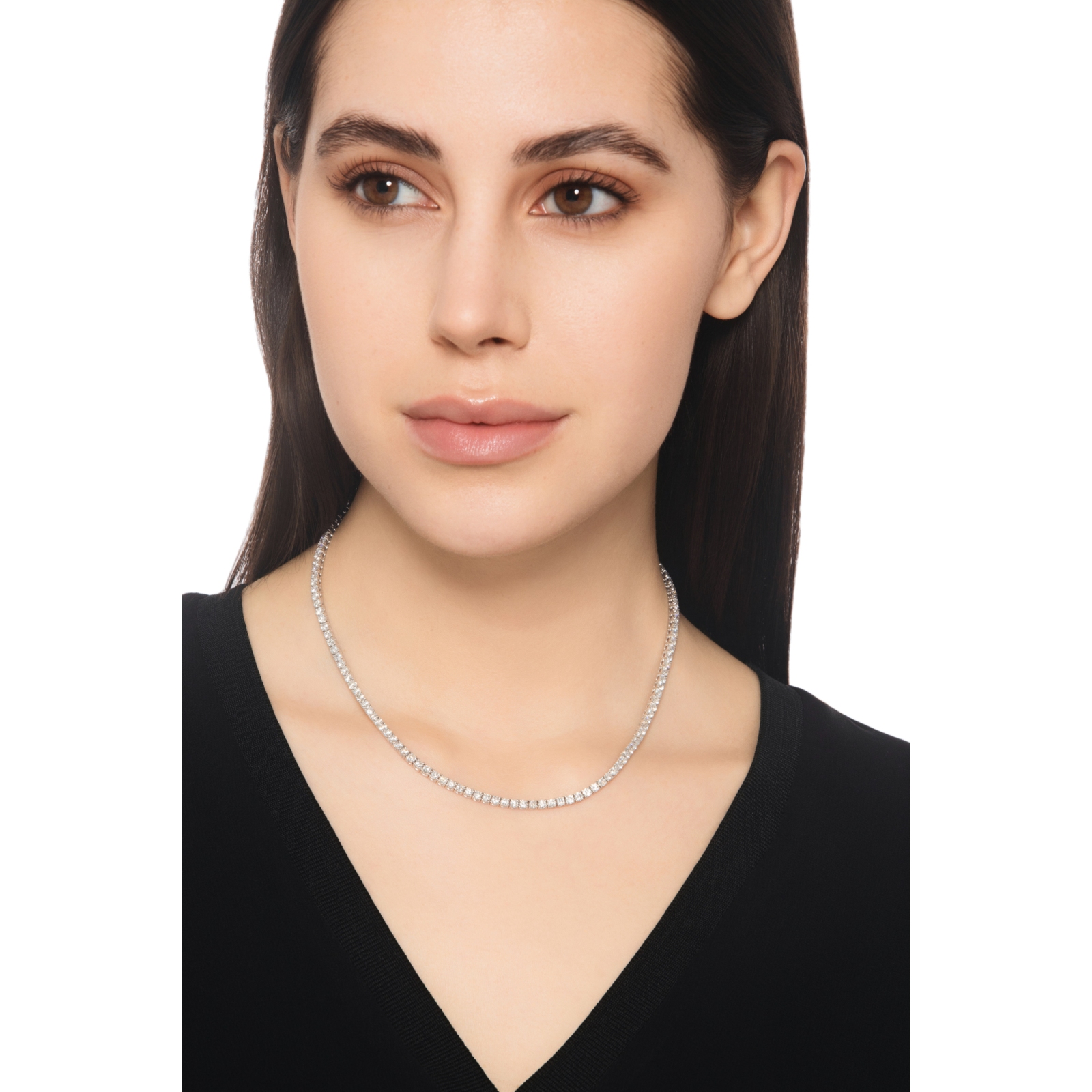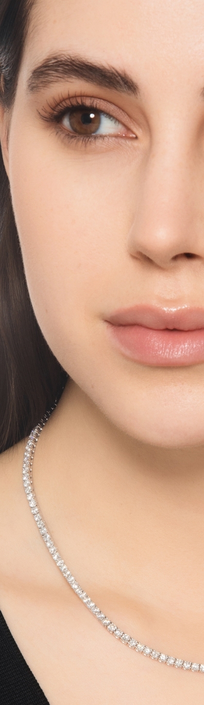 Girocollo tennis a filo lineare in oro bianco 18k con diamanti