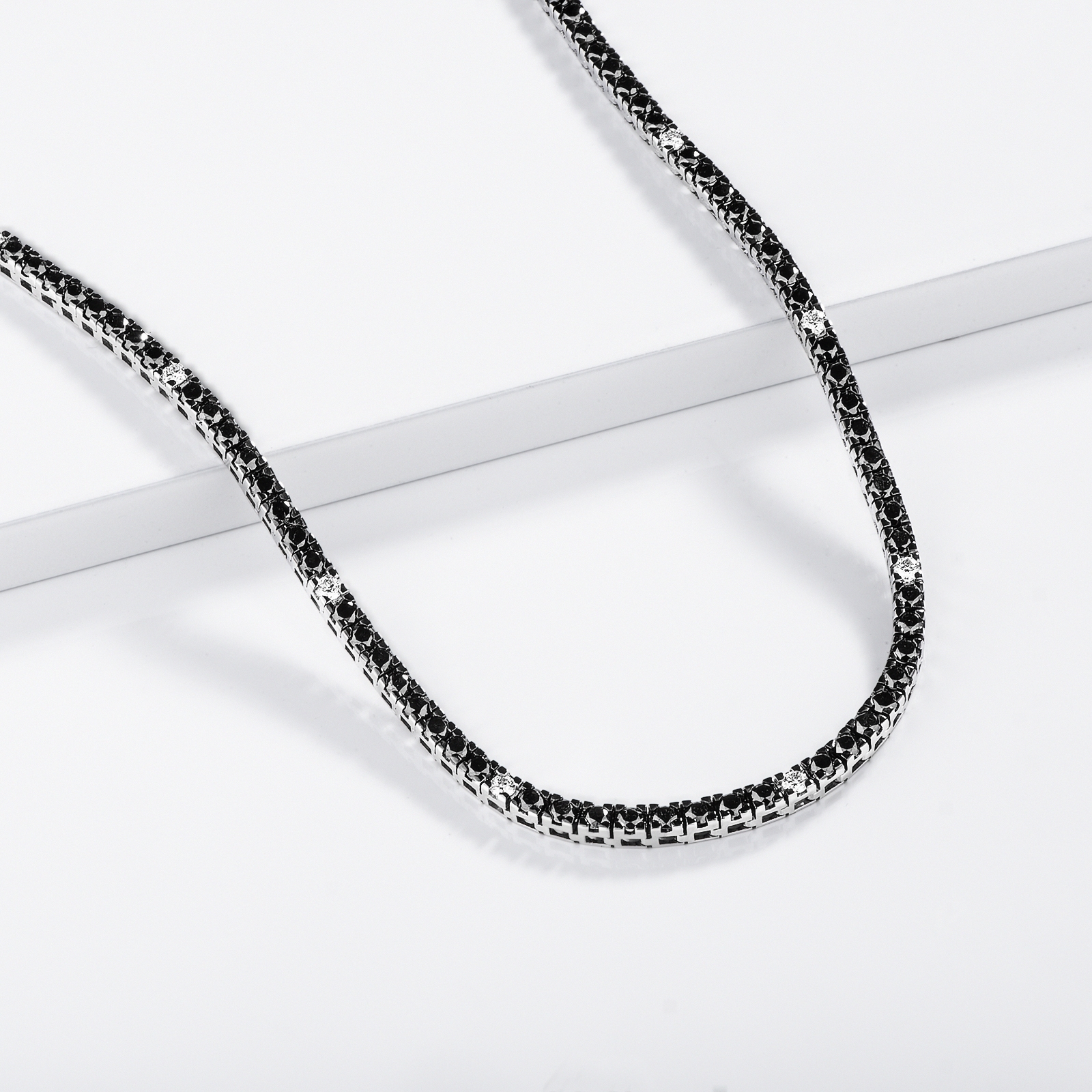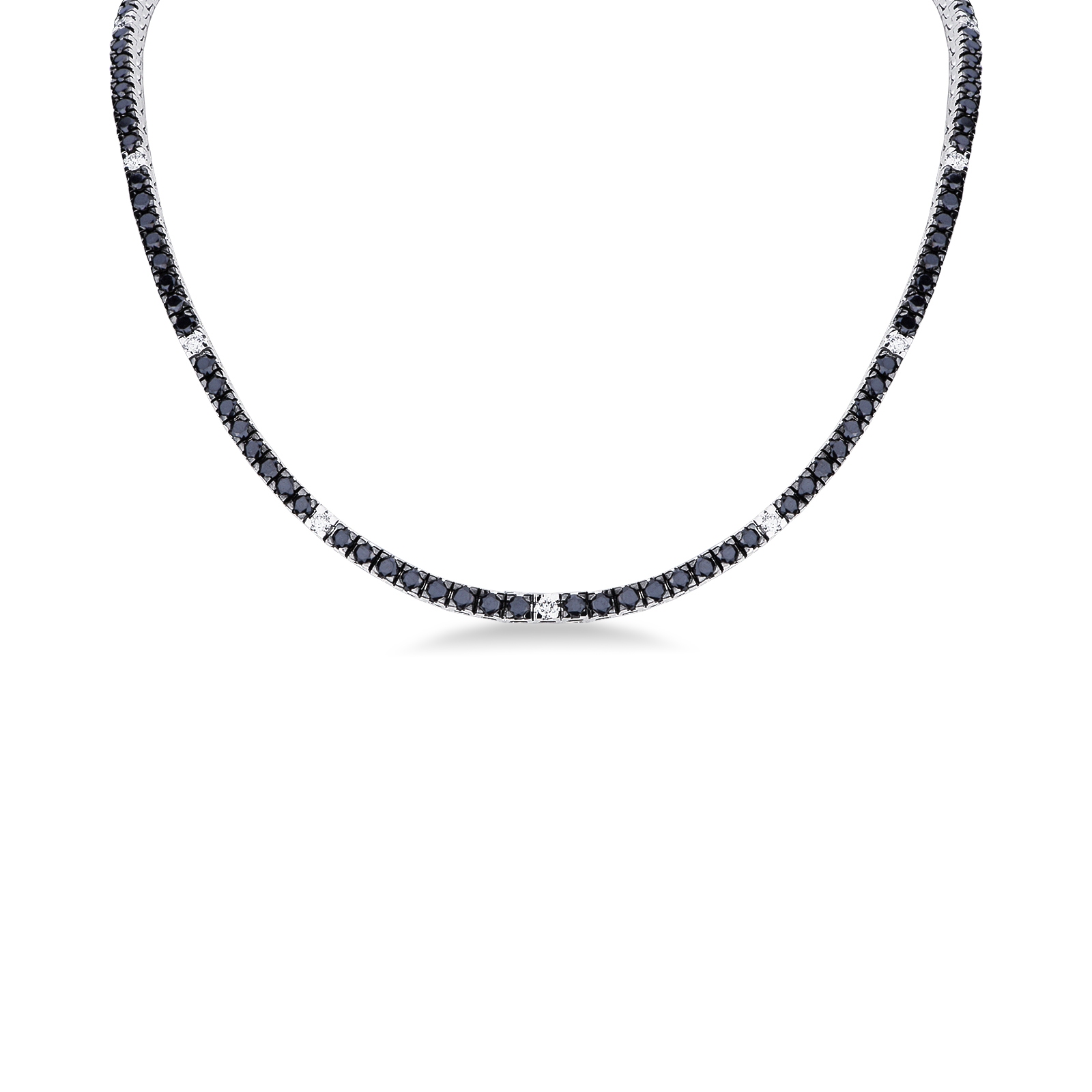 Girocollo tennis in oro bianco 18k con diamanti neri e bianchi