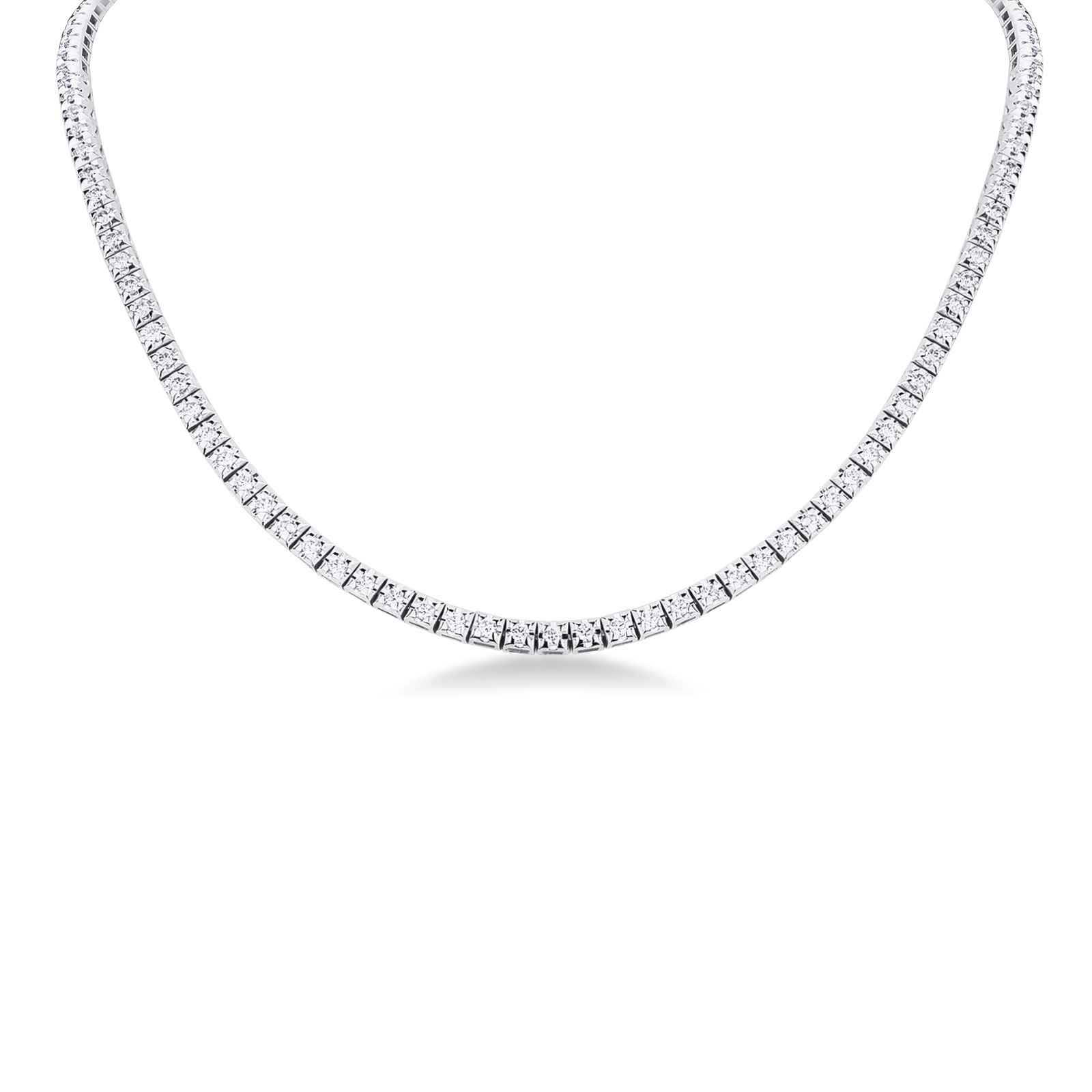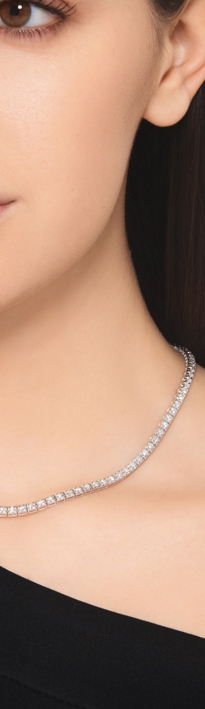 Girocollo tennis lineare a piramide in oro bianco 18k con diamanti