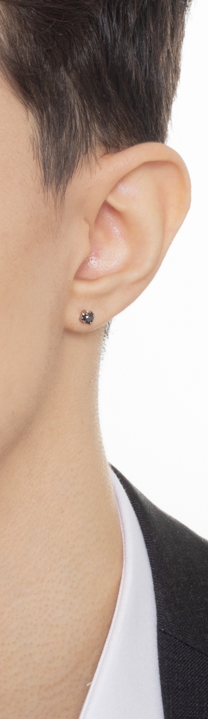 Mono orecchino in oro bianco 18k a 4 griffe con diamante nero, 0.18 ct, Uomo