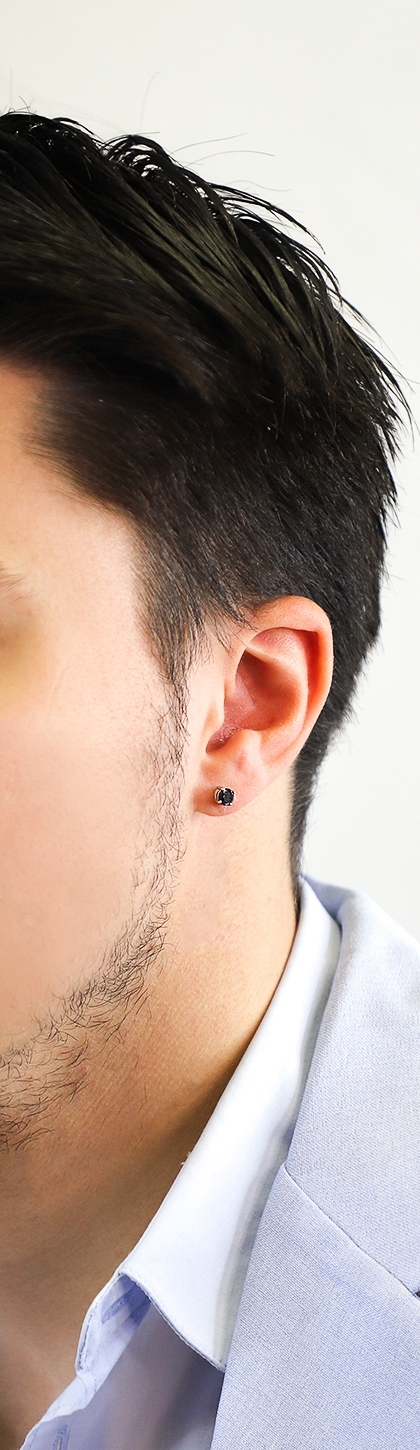 Mono orecchino in oro bianco 18k a 4 griffe con diamante nero, 0.40 ct, Uomo