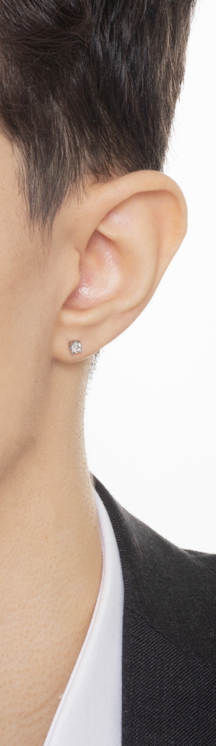 Mono orecchino punto luce in oro bianco 18k con diamante, uomo