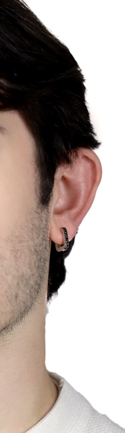 Mono orecchino rettangolare in oro bianco 750 con diamanti neri