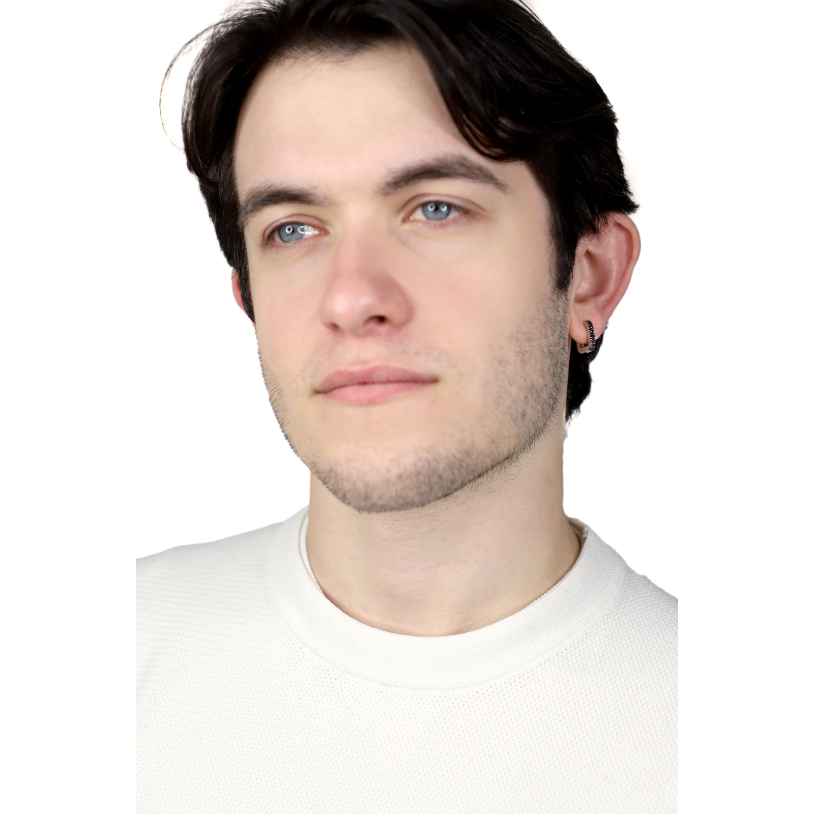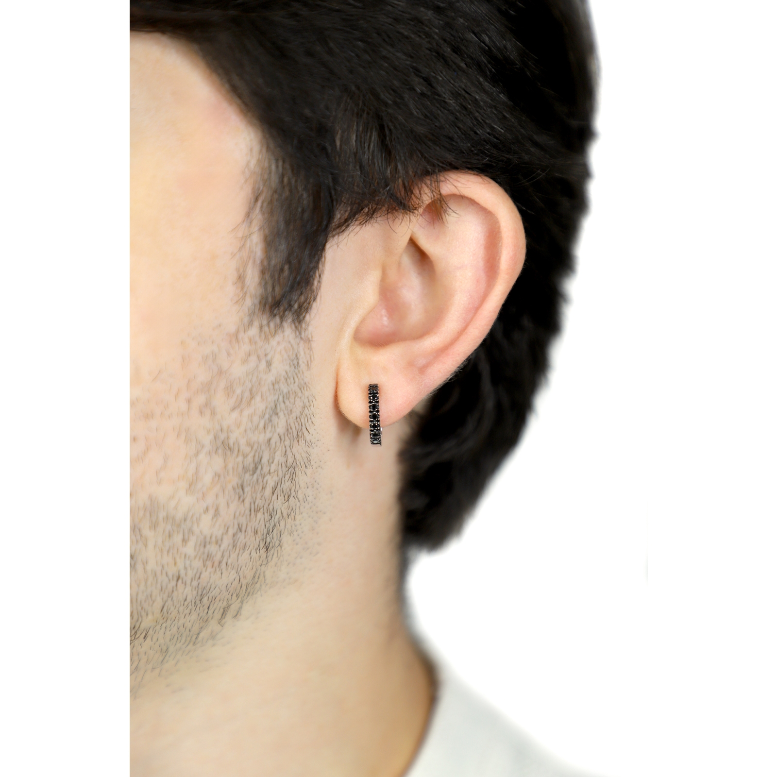 Mono orecchino in oro bianco 18k con fila in diamanti neri.
