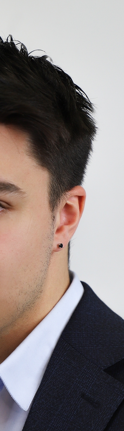 Mono orecchino uomo in oro bianco 18k a 4 griffe con diamante nero, 0.25 ct
