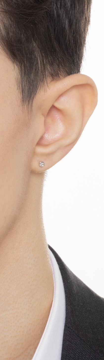 Mono orecchino in oro Bianco 18k a castone con diamante, Uomo