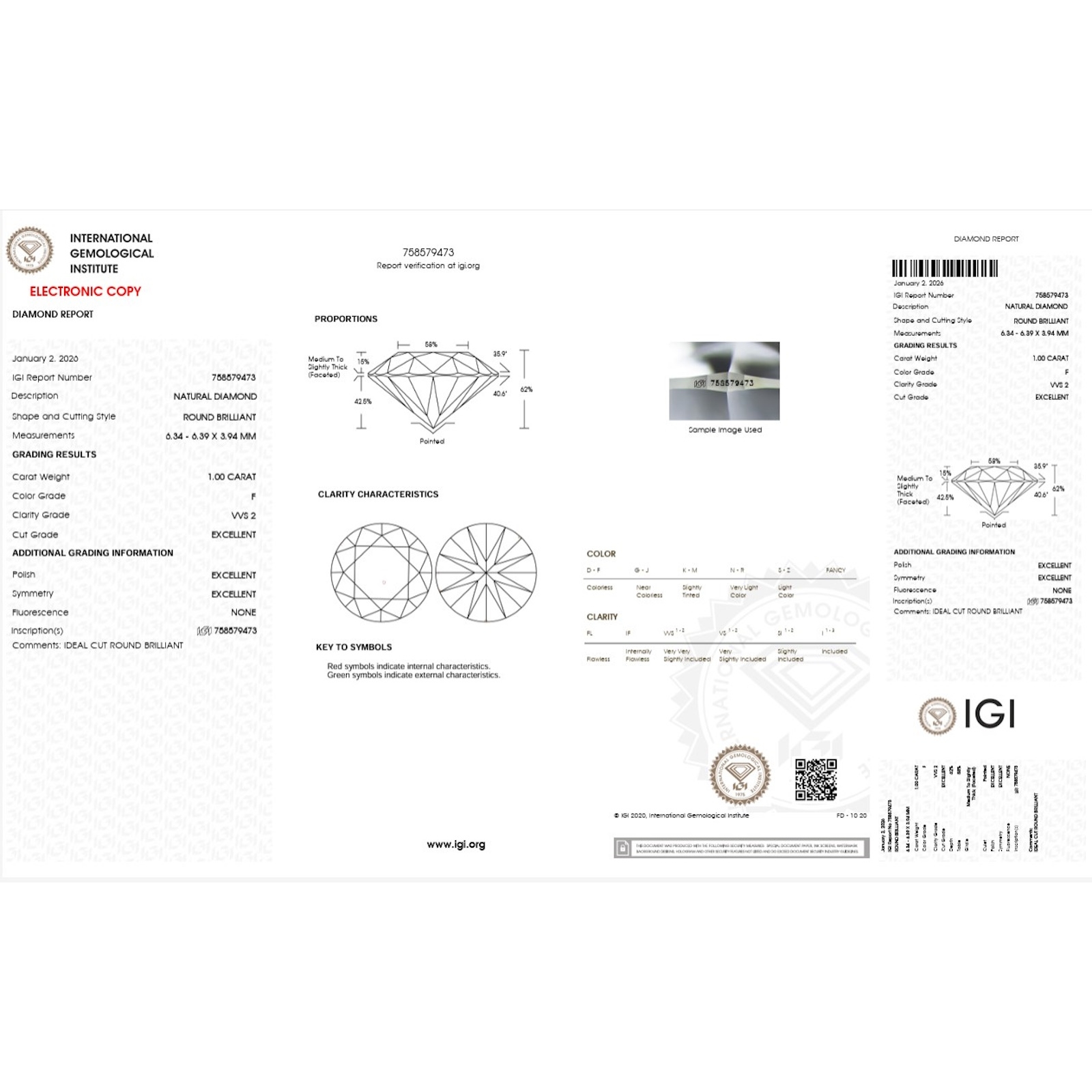 Diamante Certificato IGI CT 1,00 F VVS 2